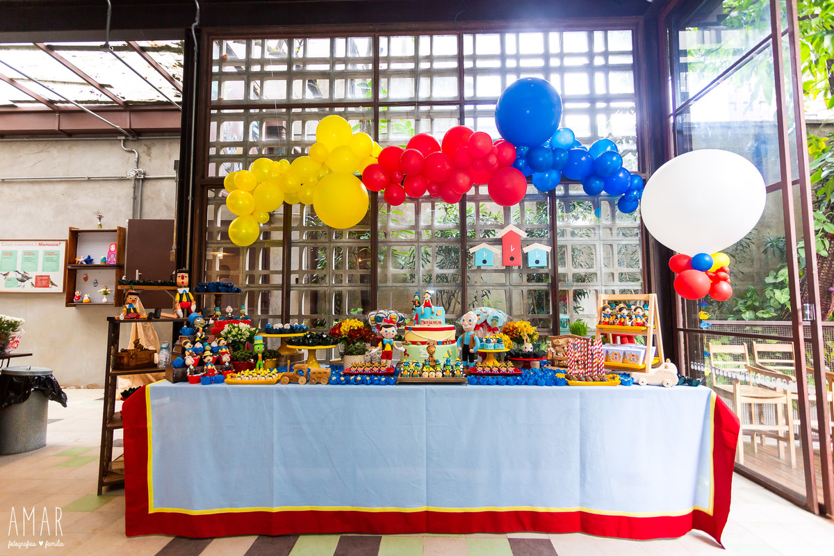 Que tema mais especial para a festa de aniversário do Benjamim: Pinocchio! O Mamusca é um espaço lindo, sem eletrônicos, com música e muitas atividades para a criançada. Assim foi o primeiro aniversário desse bebê fofura, cheio de simpatia.