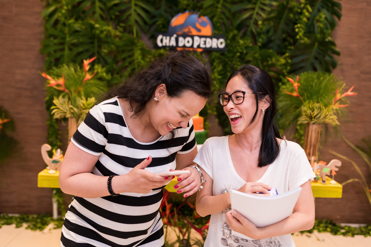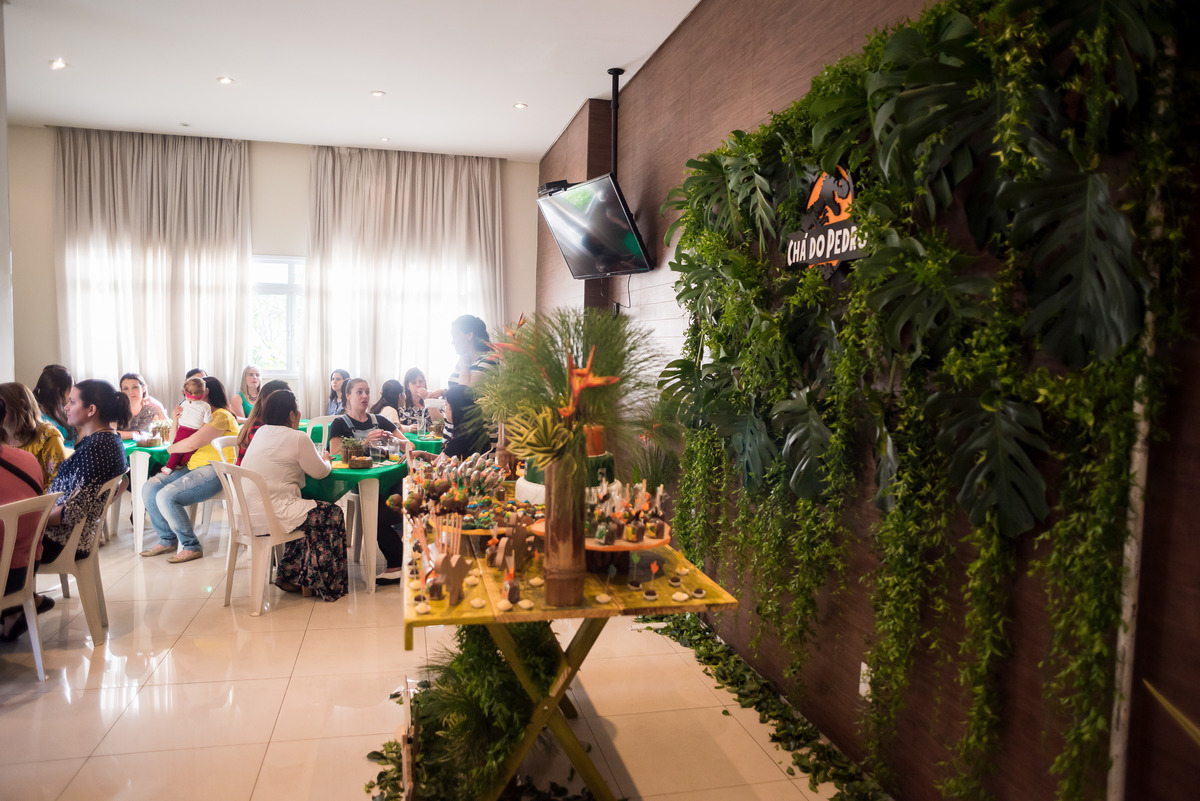 A Mari e o Vagner comemoraram junto com os amigos e a família a chegada do Pedro, com um Chá de Bebê muito lindo, com a decoração no tema DInossauros. Foi uma tarde cheia de brincadeiras super divertidas